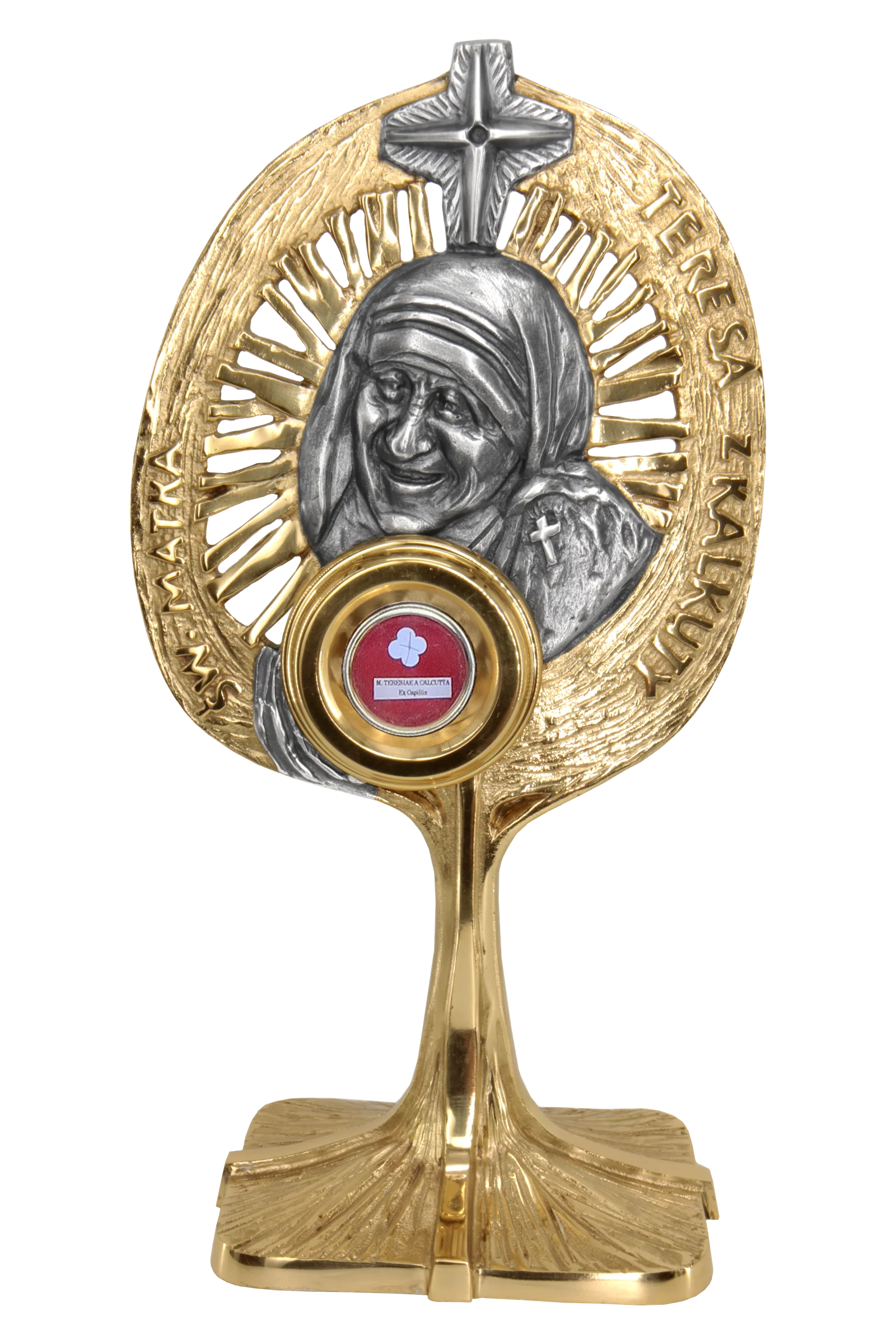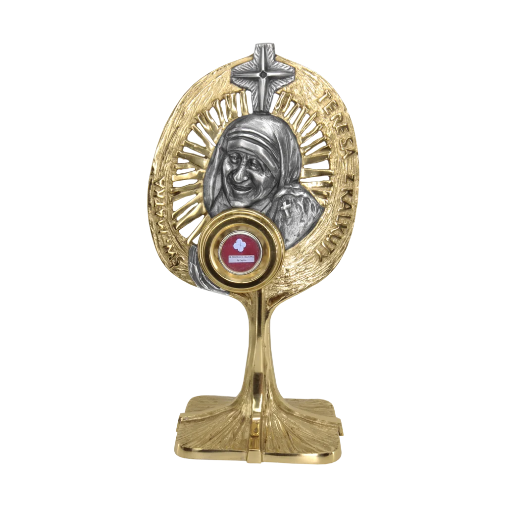Święta zasłynęła jako założycielka Zgromadzenia Misjonarek Miłości i całkowicie poświęciła swoje życie ubogim. Jej atrybuty to krzyż i sari, a jako patronka zachęca do czynnej miłości bliźniego. Dlatego relikwiarz nie tylko wyróżnia się pięknem wykonania, lecz także przypomina o duchowym dziedzictwie świętej i jej przesłaniu miłosierdzia.