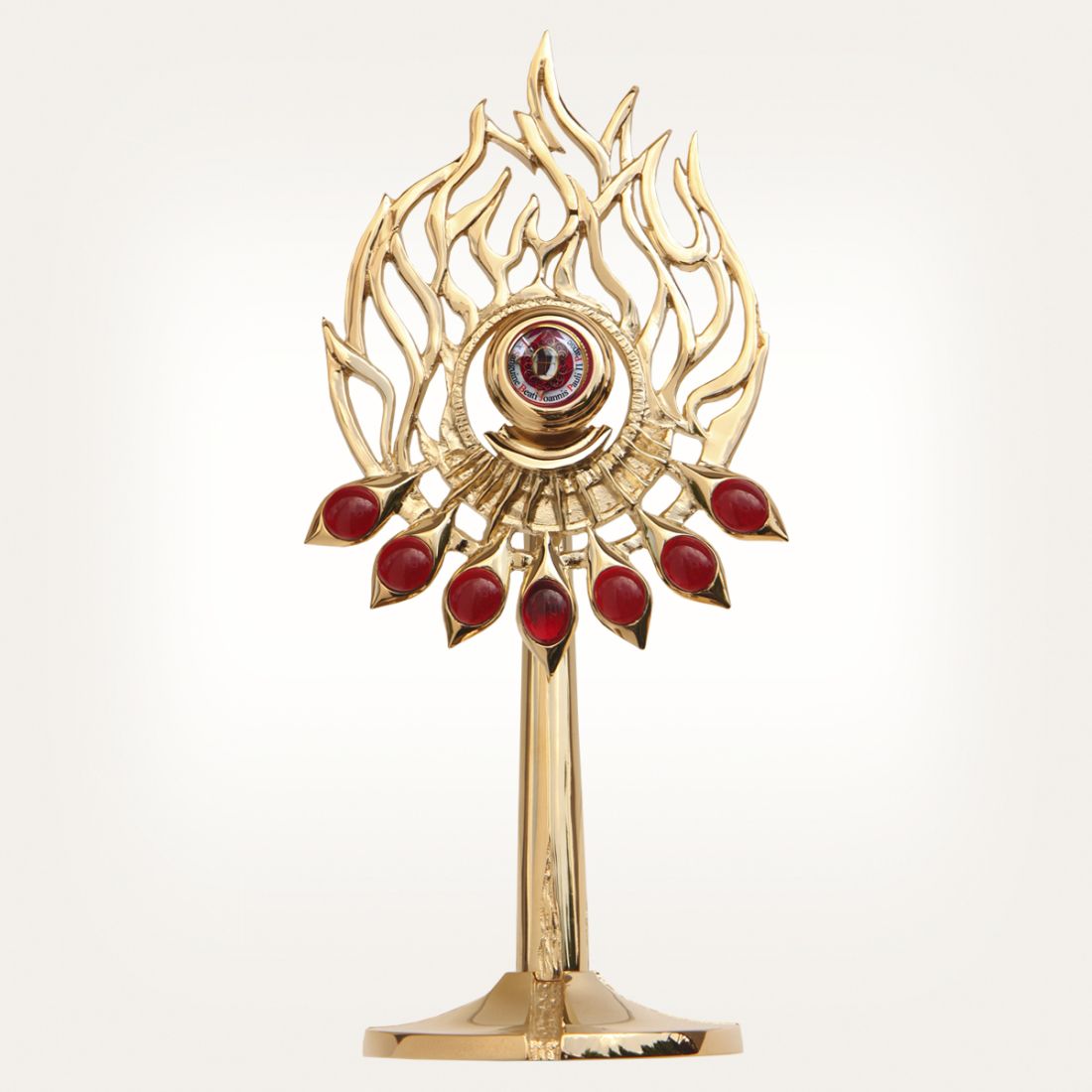 Wykonany z mosiądzu z czerwonymi szkiełkami.