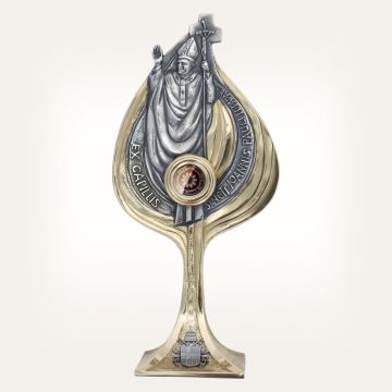Każdy wzór naszych relikwiarzy jest dedykowany indywidualnie dla danej postaci błogosławionego lub świętego. Charakteryzuje się przedstawieniem na nim postaci lub sceny historycznej z nim związanej.