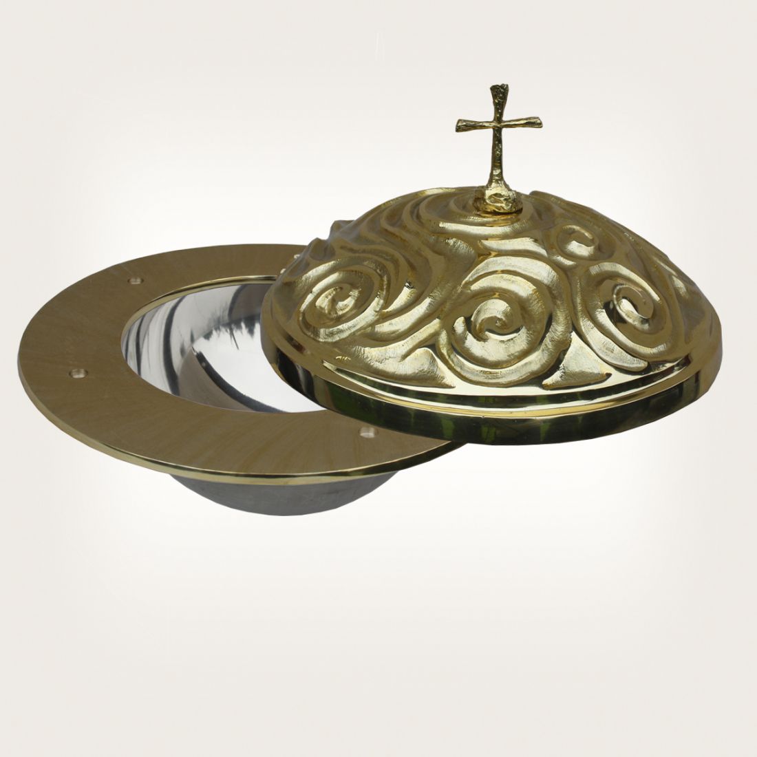 Pokrywa na chrzcielnicę – odlew z mosiądzu, przesuwna na osi.